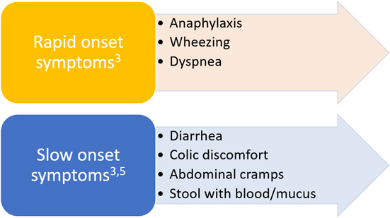 • Symptoms of food allergy can appear over a range of time.