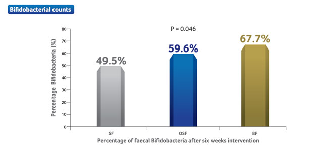 The study was the first to demonstrate the bifidogenic effect and an associated change in metabolic activity with the use of scGOS:lcFOS supplemented Formula in infants with a pre-established microflora associated with conventional milk formula.