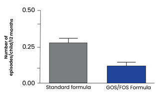 Figure 1: Mean number of episodes of acute gastroenteritis was significantly lower in the GOS/FOS. (Adapted from Bruzzese E et al., 2009)
